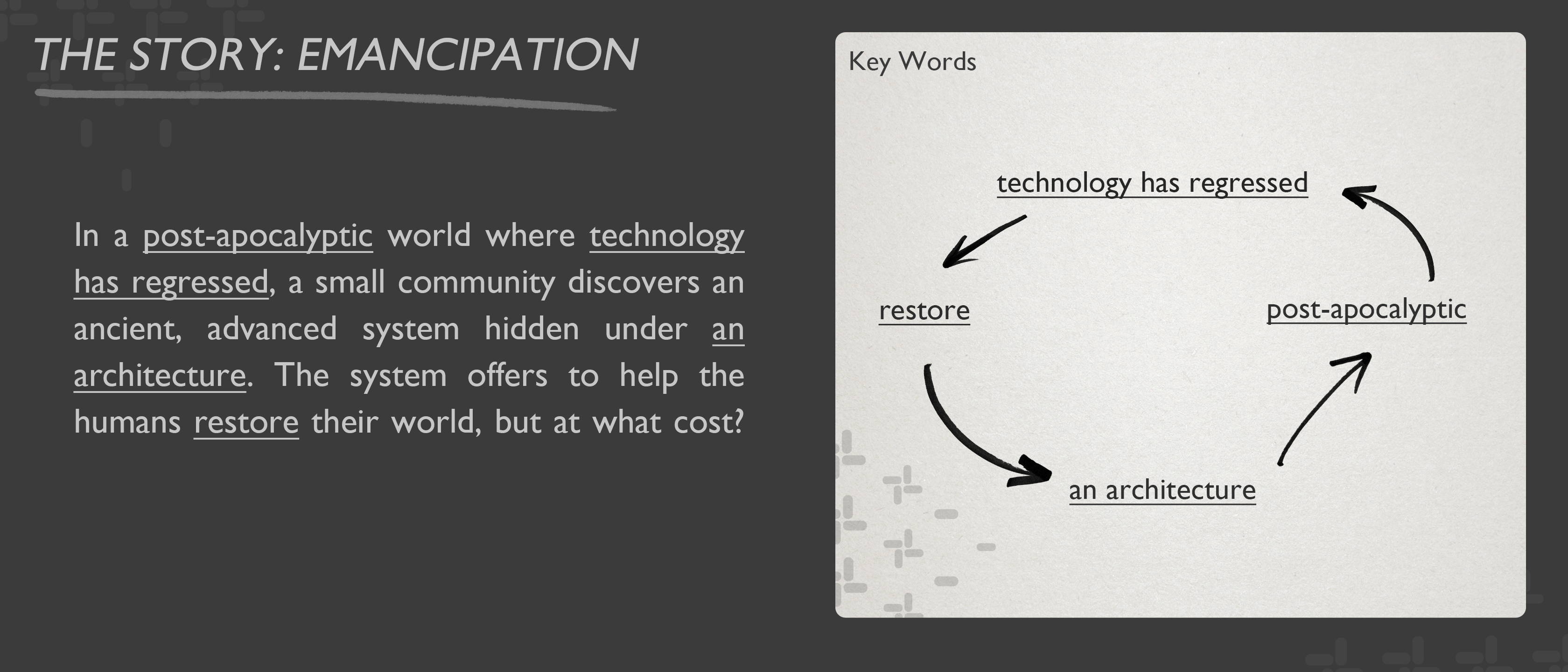 In a post-apocalyptic world where technology has regressed, a small community discovers an ancient, advanced system hidden under an architecture.